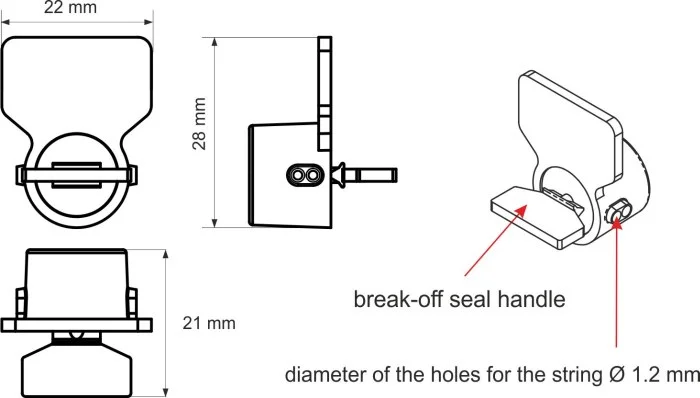 Sigillo ad alette prodotto in Polonia in policarbonato con lunghezza regolabile individualmente, compatibile con il filo di sigillatura STRING 600, diametro 0,6 mm. La sua esclusiva camera di tenuta impedisce lo svolgimento della bobina senza manomissioni visibili. Il portasigillo frangibile ROTO impedisce manomissioni. Questo sigillo per fusti è utilizzato per sigillare magazzini, veicoli e dispositivi di misurazione. È disponibile in due colori: rosso e blu. Il numero di serie è stampato sull’aletta e le ultime tre cifre sulla bobina per impedire l’alesatura e il montaggio dell’altro elemento.