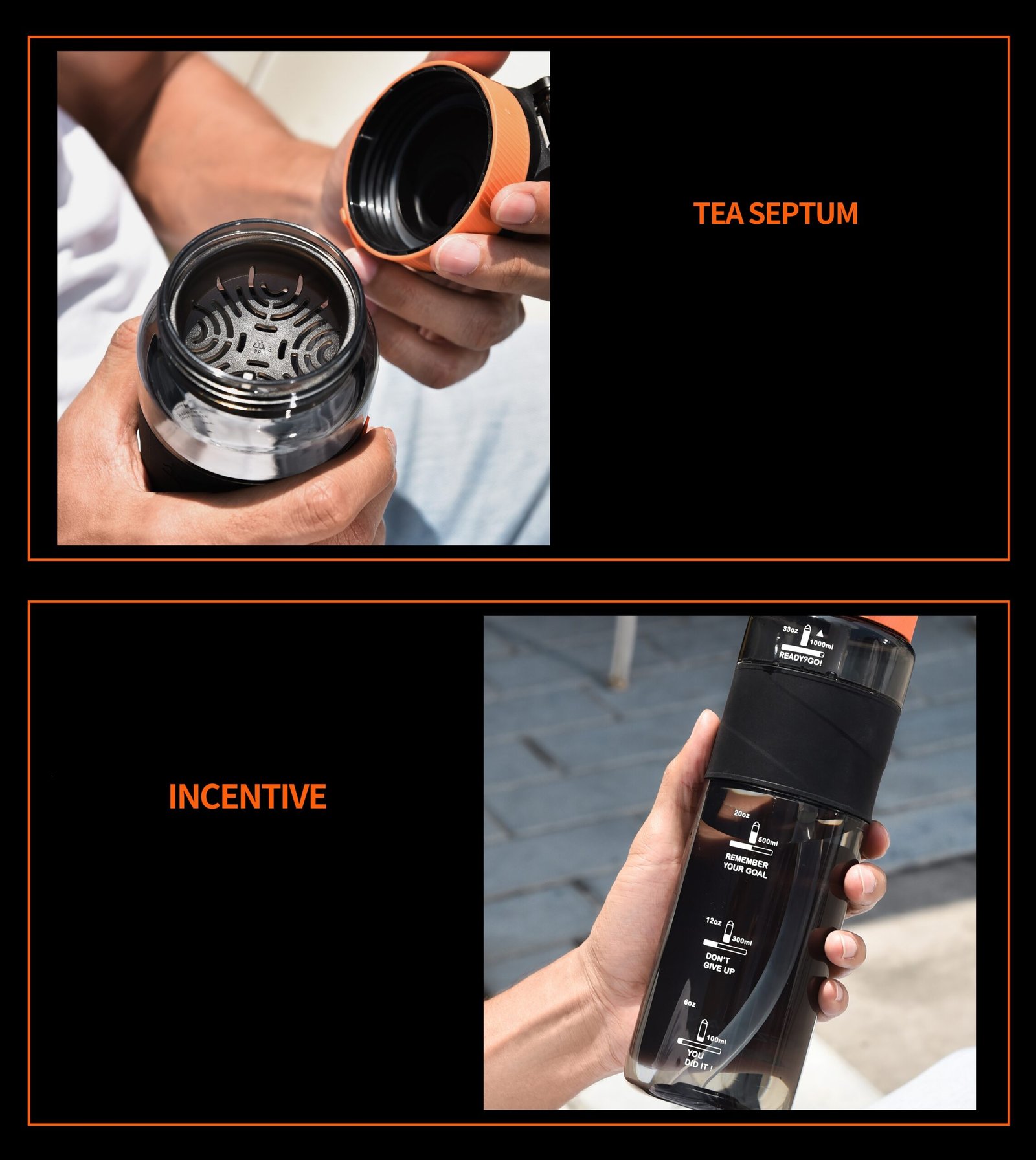 Estas botellas incluyen un colador extraíble ideal para preparar té, frutas infusionadas o bebidas detox. La tapa a prueba de fugas, junto con su sistema de flujo rápido, permite beber cómodamente incluso en movimiento, evitando derrames y asegurando una hidratación constante durante cualquier actividad.
