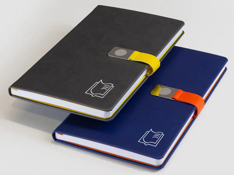 Este modelo incluye: una selección de colores de cubierta de PU suave para elegir, marcapáginas, lazo para bolígrafo, correa con cierre magnético y con acabado cromado y personalizado. Este modelo ofrece la posibilidad de elegir el color del interior de la cubierta y el bolsillo de papel en la parte trasera. Posibilidad de elegir seis estilos de página interior diferentes, consulta a continuación para obtener más detalles y todas las opciones disponibles.