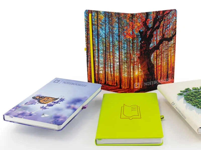Este modelo Eco A5 incluye: cubierta de PU con un logotipo grabado en bajo relieve, estampado térmico en una posición o laminación suave al tacto en CMYK, cubierta impresa, cinta marcapáginas, lazo porta bolígrafo, cinta elástica, páginas interiores forradas de marfil recicladas y reciclables aprobadas por FSC.