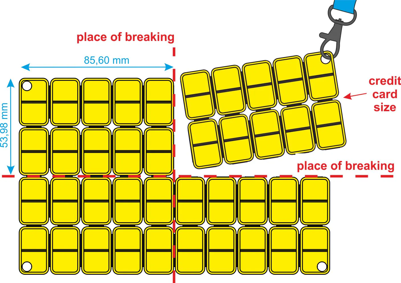 • Es posible partir hojas más pequeñas de 20 unidades (tamaño de tarjeta de crédito ID-1).